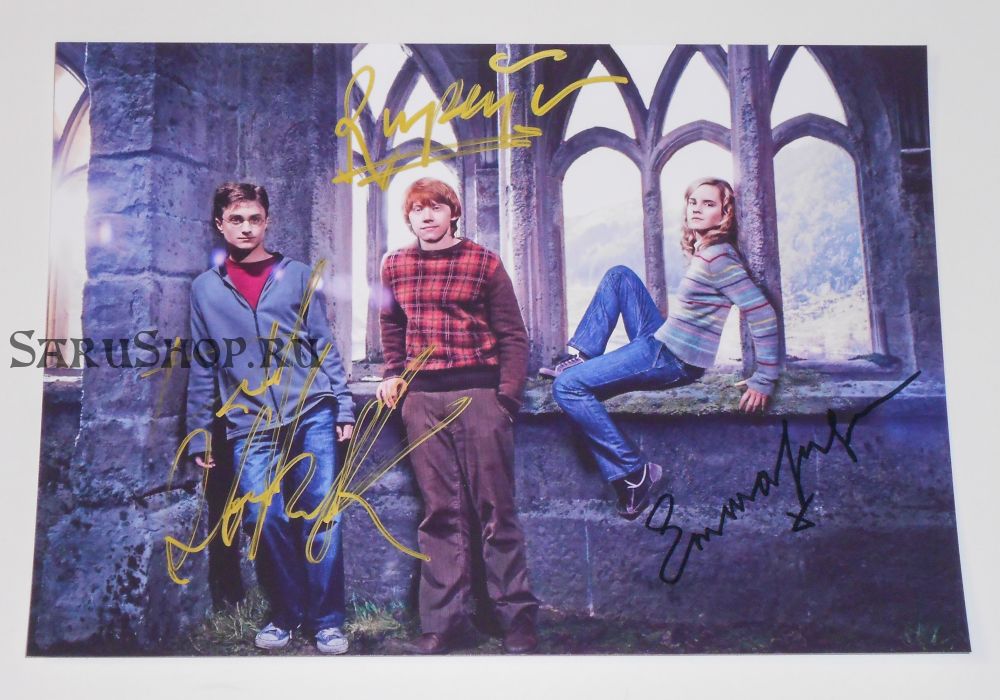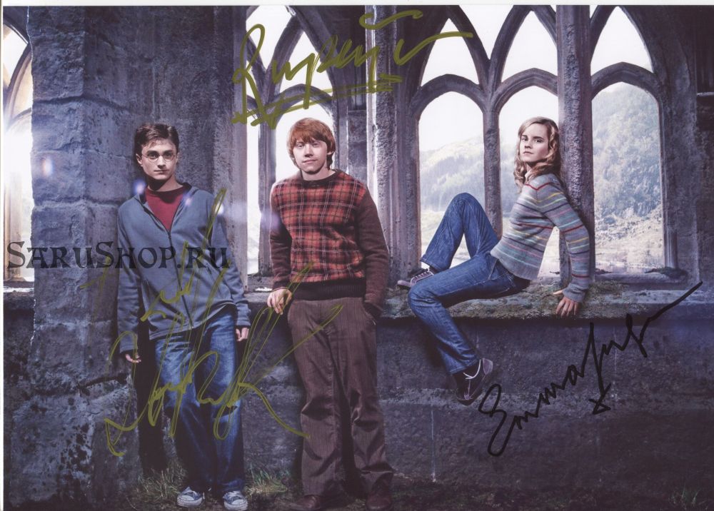 Автографы: Дэниэл Рэдклифф, Руперт Гринт, Эмма Уотсон.