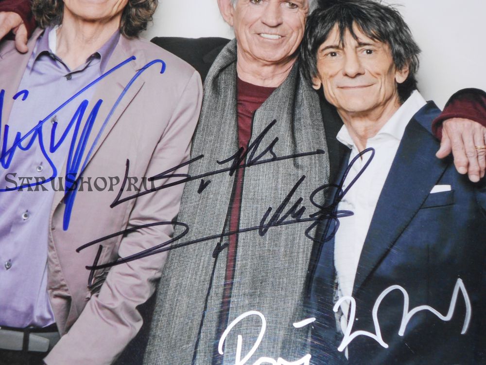 Автографы: Мик Джаггер, Кит Ричардс, Чарли Уоттс, Рон Вуд.