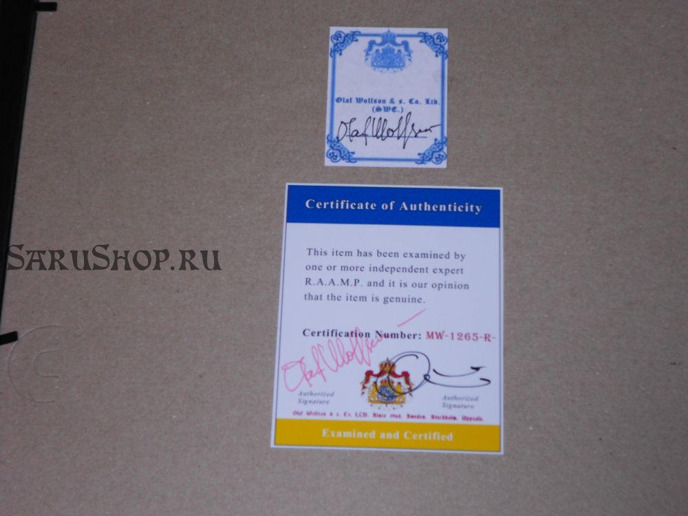 Все автографы без исключения закупаются в Швеции, в специализированном, семейном магазине меморабилий. Магазин существует с 1968 года и обладает большим количеством предметов коллекционирования. Лично мы работаем с этой фирмой с 2001 года.
